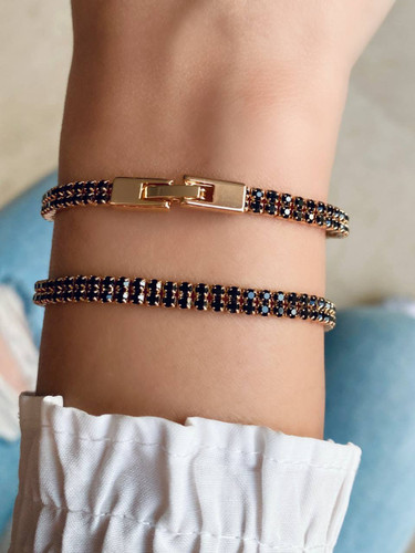 دستبند زنانه مدل تنیسی، برند ژوپینگ، با نگین مشکی و آبی کد ۰۴