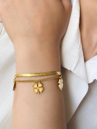 دستبند استیل ماری با آویز شبدر چهار برگ