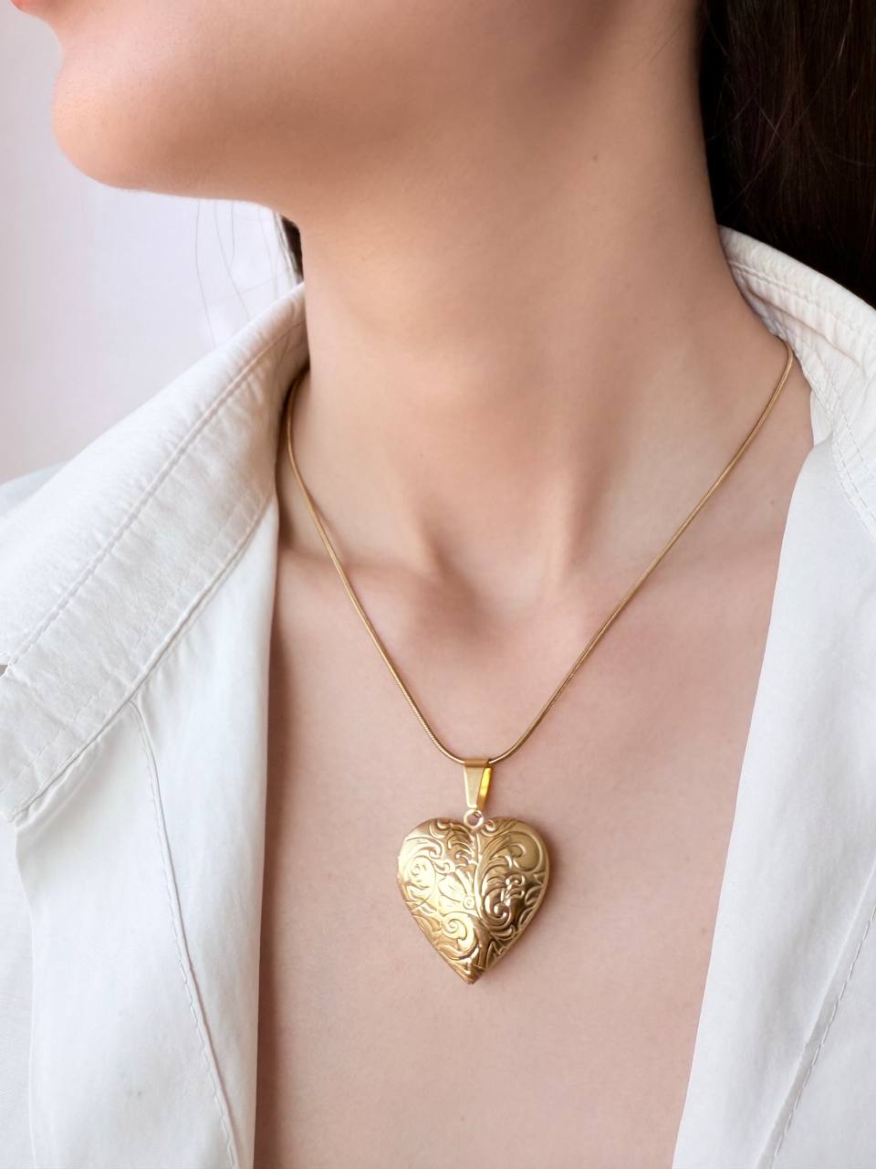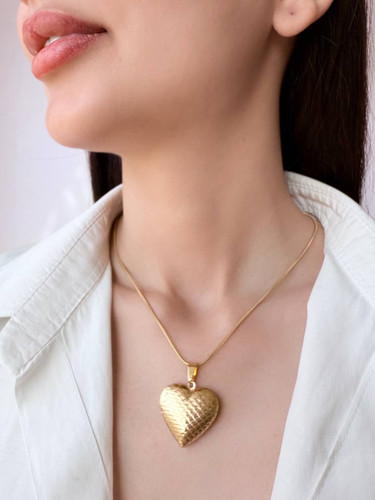 آویز گردنبند قاب عکسی (لاکت)، مدل قلب طرح دار، جنس استیل