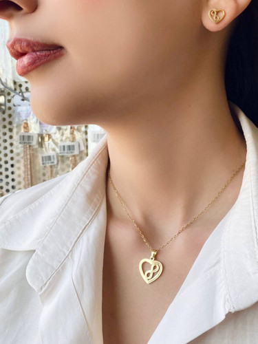 نیمست زنانه، مدل قلب با نگین سبز و قرمز، برند ysx