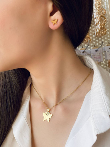 سرویس زنانه استیل، مدل ماری با آویز پروانه