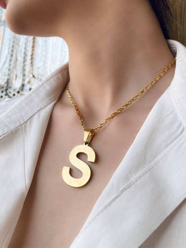 آویز گردنبند استیل مدل حرف S با تنوع رنگ