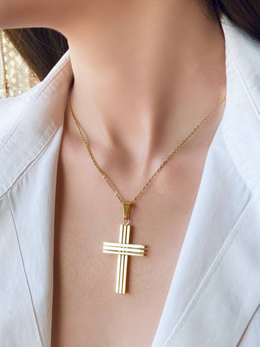 آویز گردنبند استیل مدل صلیب، با تنوع رنگ