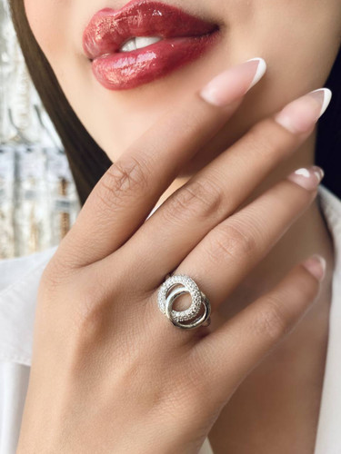 ناموجودانگشتر نیم بند نقره، مدل حلقه نگین دار