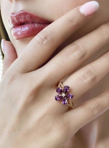 انگشتر با نگین گل پنج پر، با تنوع رنگ، برند ژوپینگ