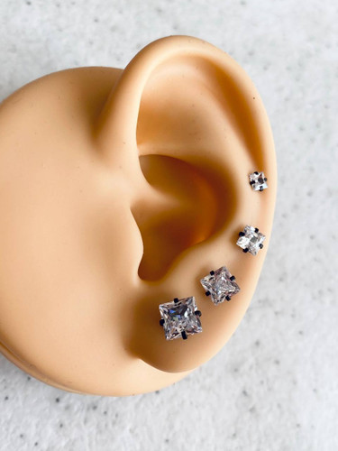 پیرسینگ گوش با نگین مربعی، جنس استیل، با تنوع رنگ
