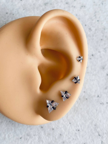 پیرسینگ گوش با نگین مثلثی، جنس استیل، با تنوع رنگ