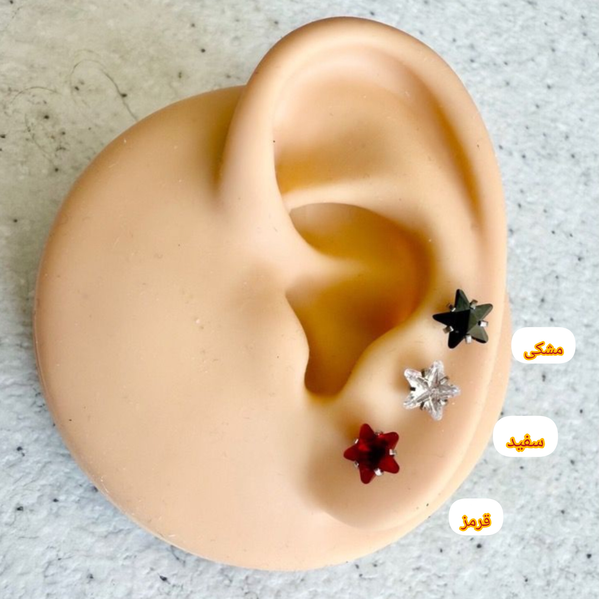 پیرسینگ استیل گوش، مدل ستاره، با تنوع رنگ کد ۰۱