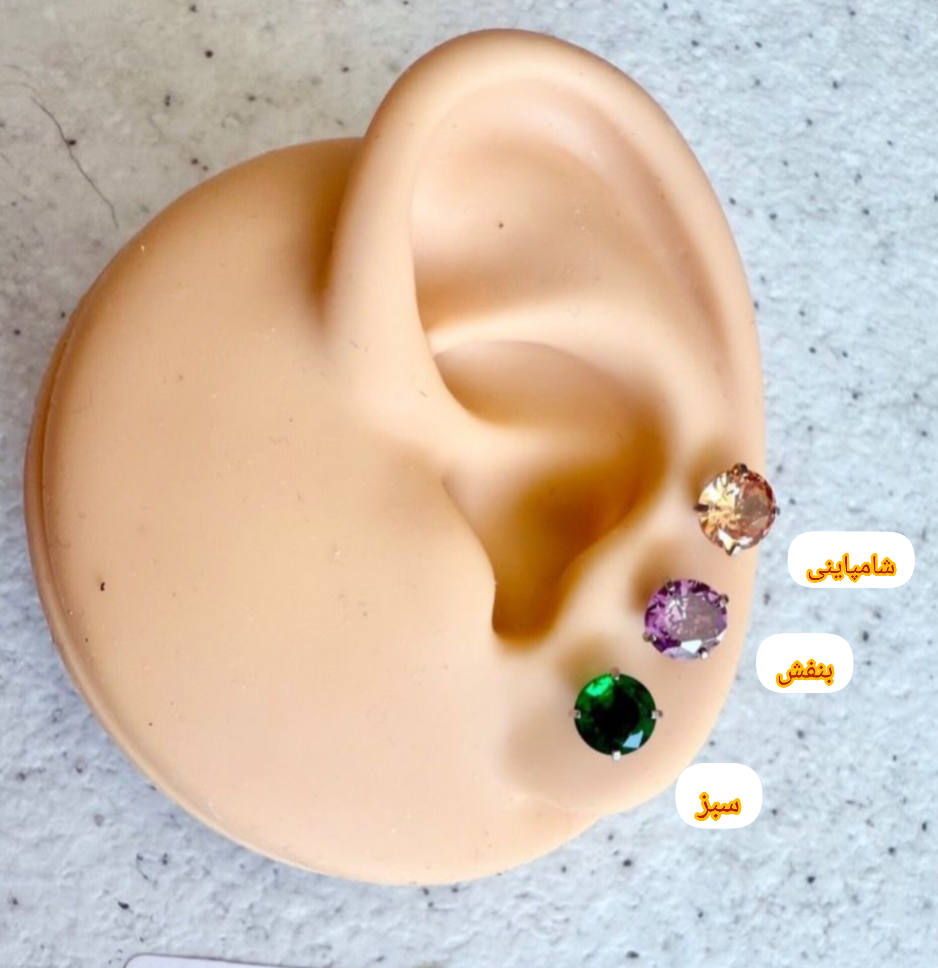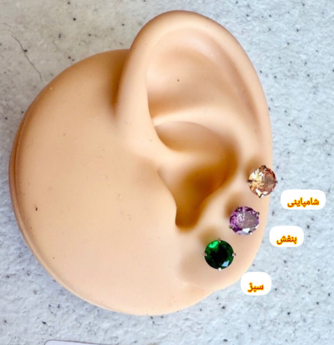 پیرسینگ استیل گوش، با نگین دایره، با تنوع رنگ