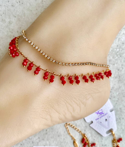 پابند با آویز و نگین، رنگ قرمز و مشکی، برند ysx