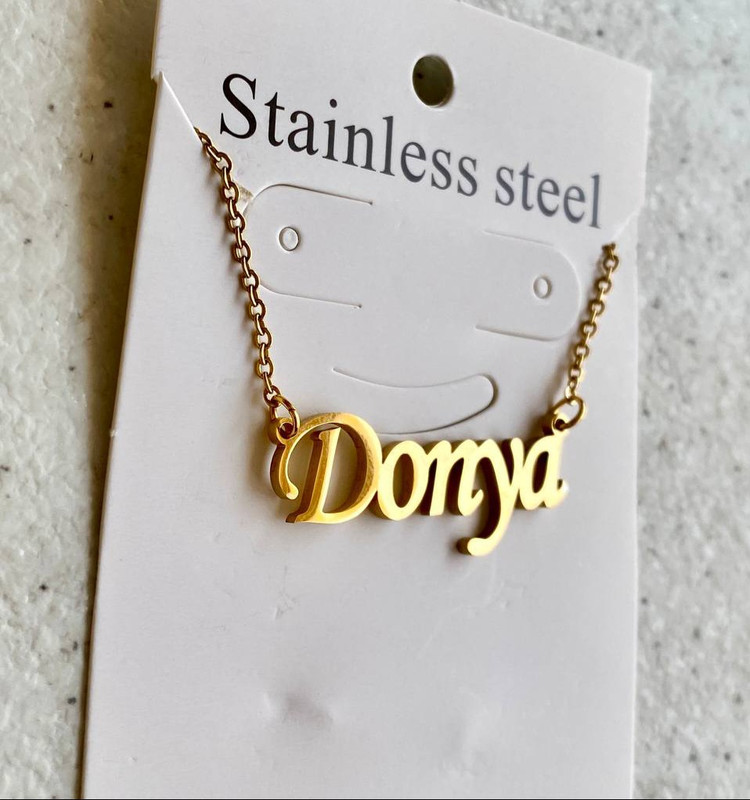 گردنبند استیل مدل اسم دنیا، با آبکاری دو لایه صنعتی و ضد حساسیت.