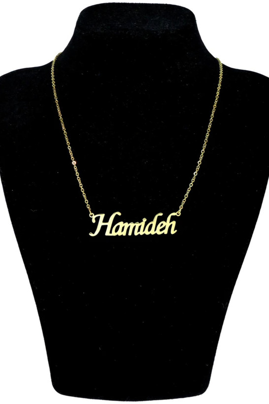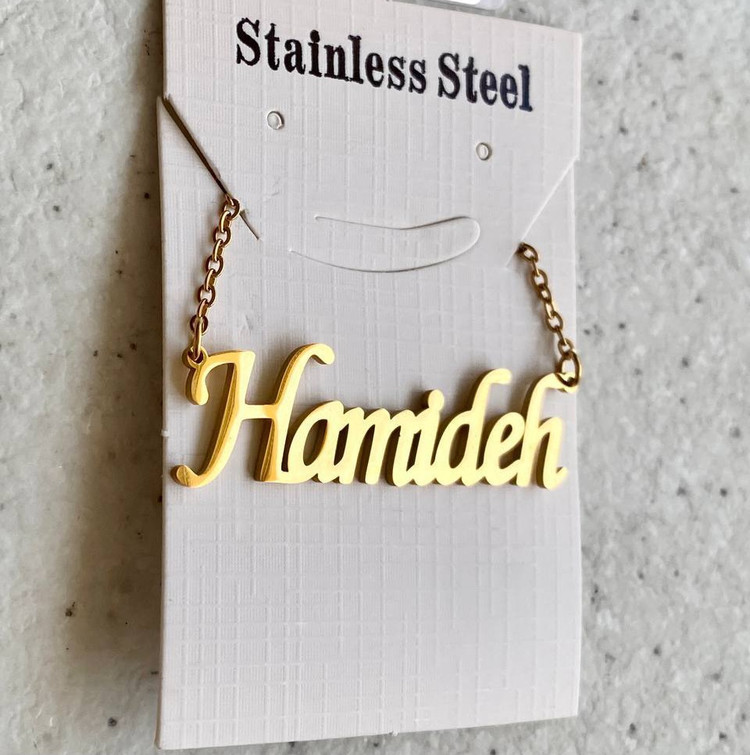 گردنبند استیل مدل اسم حمیده، با آبکاری دو لایه صنعتی و ضد حساسیت.