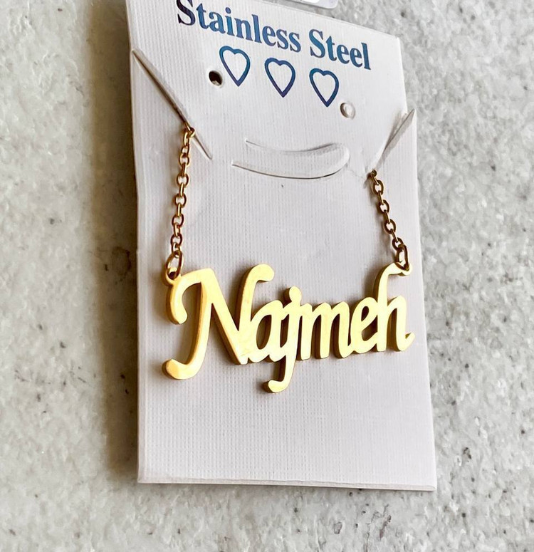 گردنبند استیل مدل اسم نجمه، با آبکاری دو لایه صنعتی و ضد حساسیت.