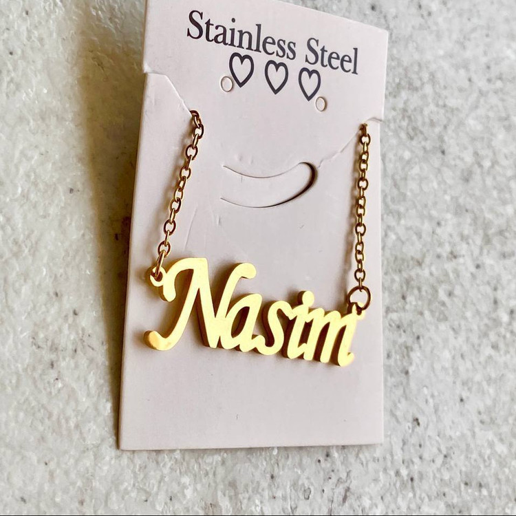 گردنبند استیل مدل اسم نسیم، با آبکاری دو لایه صنعتی و ضد حساسیت.
