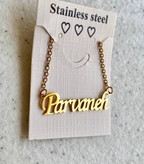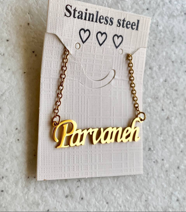 گردنبند استیل مدل اسم پروانه، با آبکاری دو لایه صنعتی و ضد حساسیت.