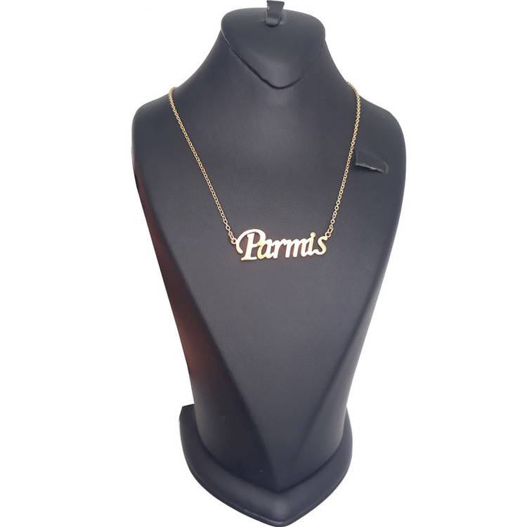 گردنبند استیل مدل اسم پارمیس، با آبکاری دو لایه صنعتی و ضد حساسیت.