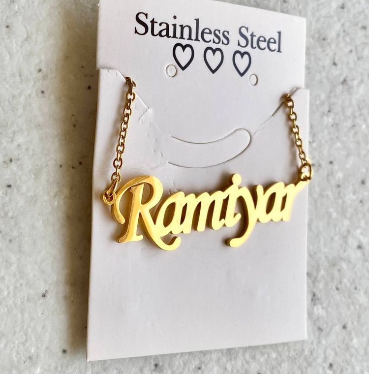 گردنبند استیل مدل اسم رامیار، با آبکاری دو لایه صنعتی و ضد حساسیت.