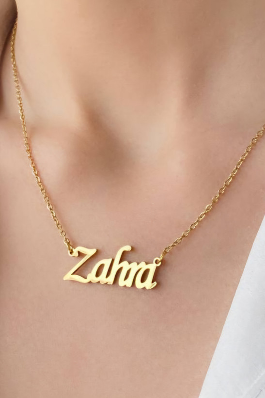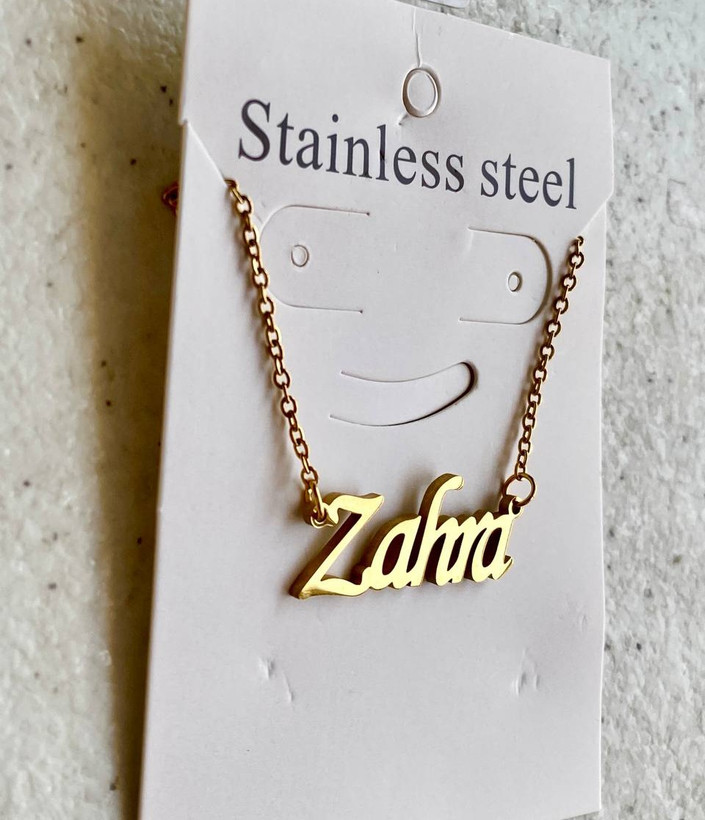 گردنبند استیل مدل اسم زهرا، با آبکاری دو لایه صنعتی و ضد حساسیت.