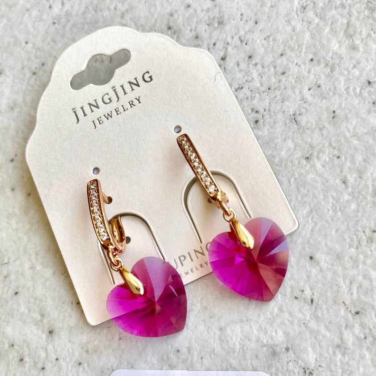 گوشواره مدل قلب با نگین سواروفسکی، رنگ صورتی، برند ژوپینگ