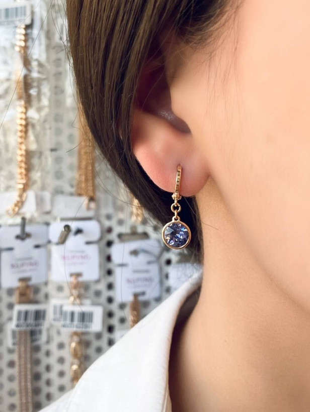 گوشواره با نگین سواروفسکی (Swarovski)، رنگ بنفش، برند ژوپینگ، آبکاری طلا، رنگ ثابت و ضد حساسیت.