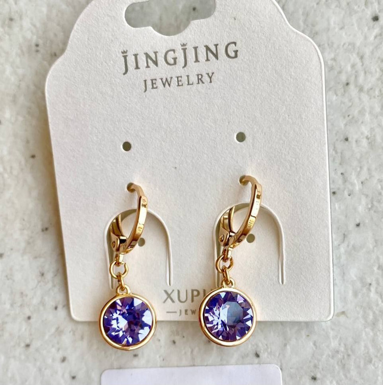 گوشواره با نگین سواروفسکی، رنگ بنفش، برند ژوپینگ