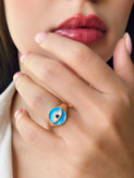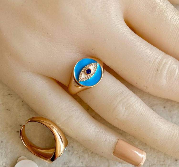 انگشتر استیل مدل چشم نظر، برند ژوپینگ. آبکاری طلا. رنگ ثابت و ضد حساسیت