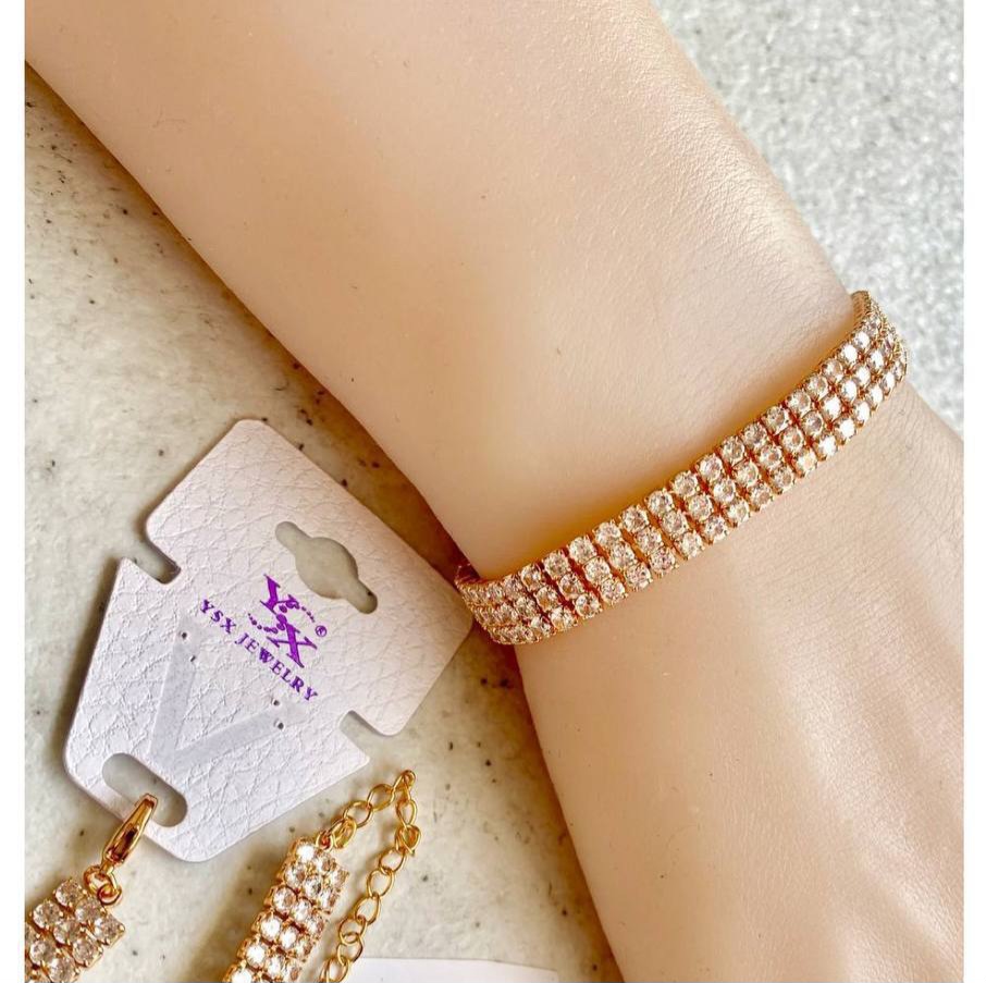 دستبند تنیسی سه ردیفه، برند ysx، با آبکاری طلا، رنگ ثابت و ضد حساسیت