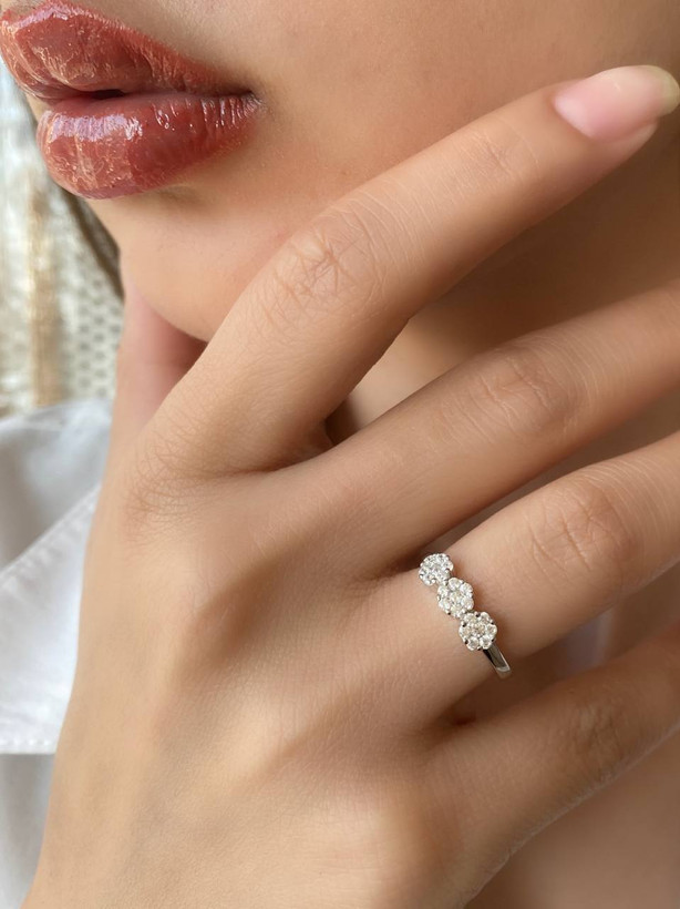 انگشتر نقره، مدل سه گل، آبکاری طلا، رنگ ثابت و ضد حساسیت.
