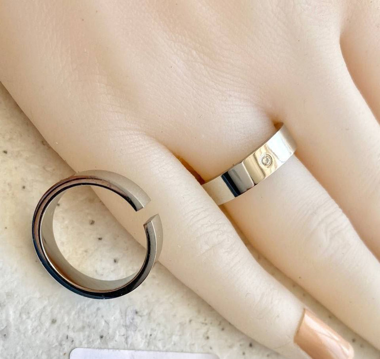 حلقه استیل تک نگین، برند ژوپینگ. آبکاری طلا. رنگ ثابت و ضد حساسیت