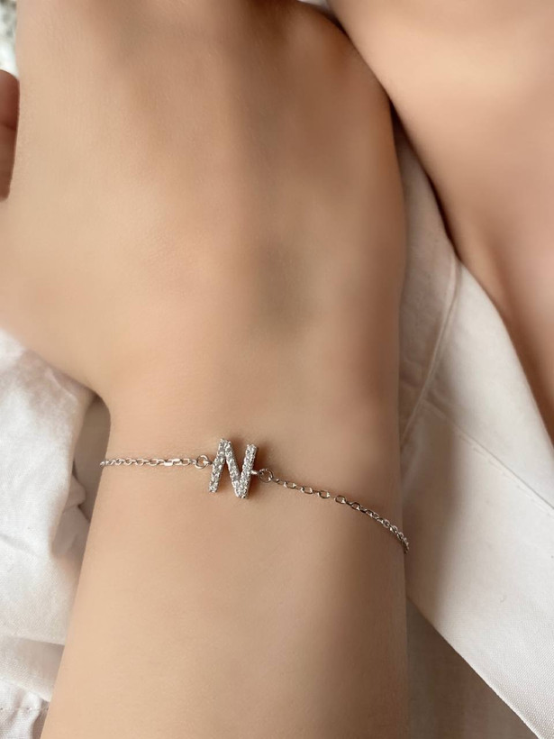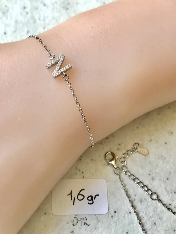 دستبند نقره، مدل حرف N، آبکاری طلا، رنگ ثابت و ضد حساسیت.