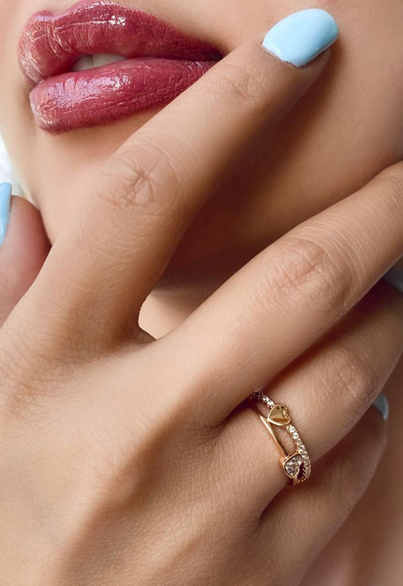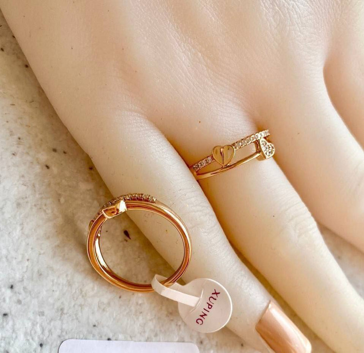 انگشتر دو ردیفه مدل قلب و برگ، برند ژوپینگ. آبکاری طلا. رنگ ثابت و ضد حساسیت