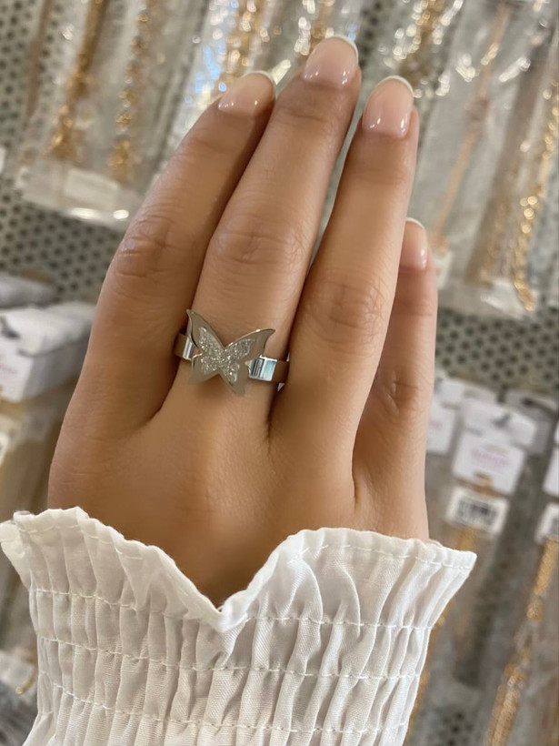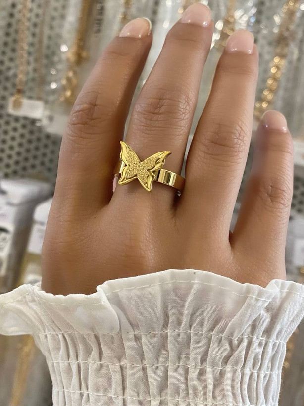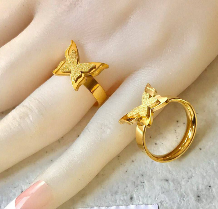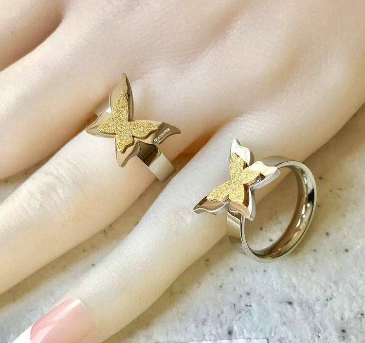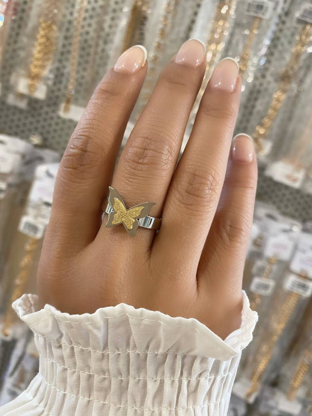 انگشتر استیل مدل پروانه. آبکاری بادوام صنعتی دو لایه و ضد حساسیت