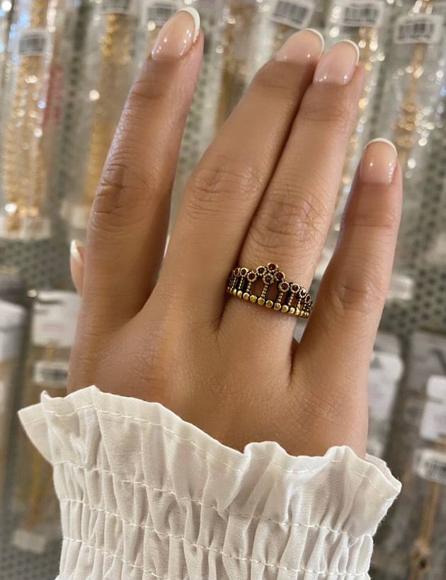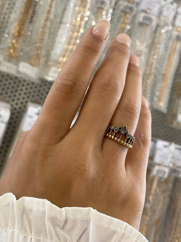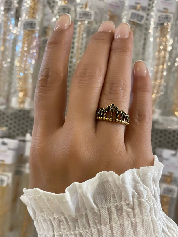 انگشتر سیاه قلم استیل، مدل تاج، با تنوع رنگ کد ۰۲
