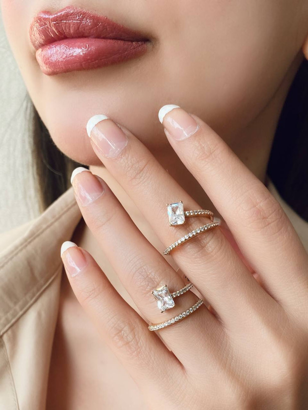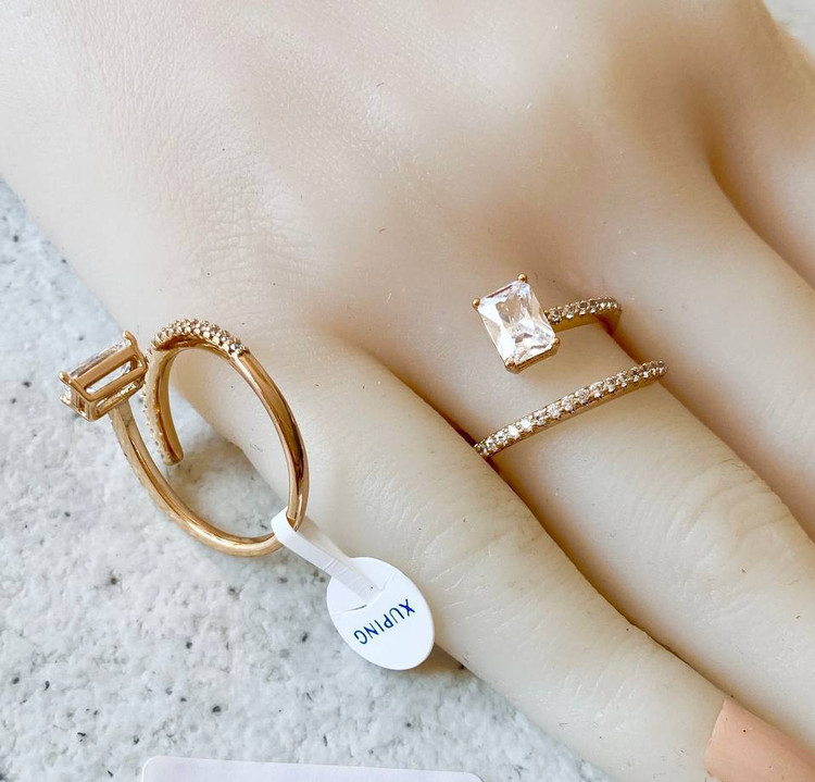 انگشتر نگین مربعی، برند ژوپینگ. ابکاری طلا. رنگ ثابت و ضد حساسیت
