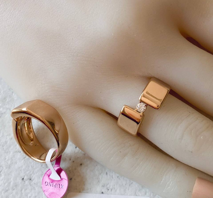انگشتر تک نگین مربعی. آبکاری طلا. رنگ ثابت و ضد حساسیت