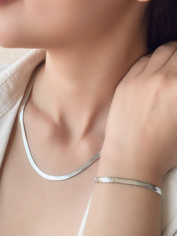 ست استیل، مدل زنجیر ماری، شامل دستبند، گردنبند و پابند، رنگ نقره ای