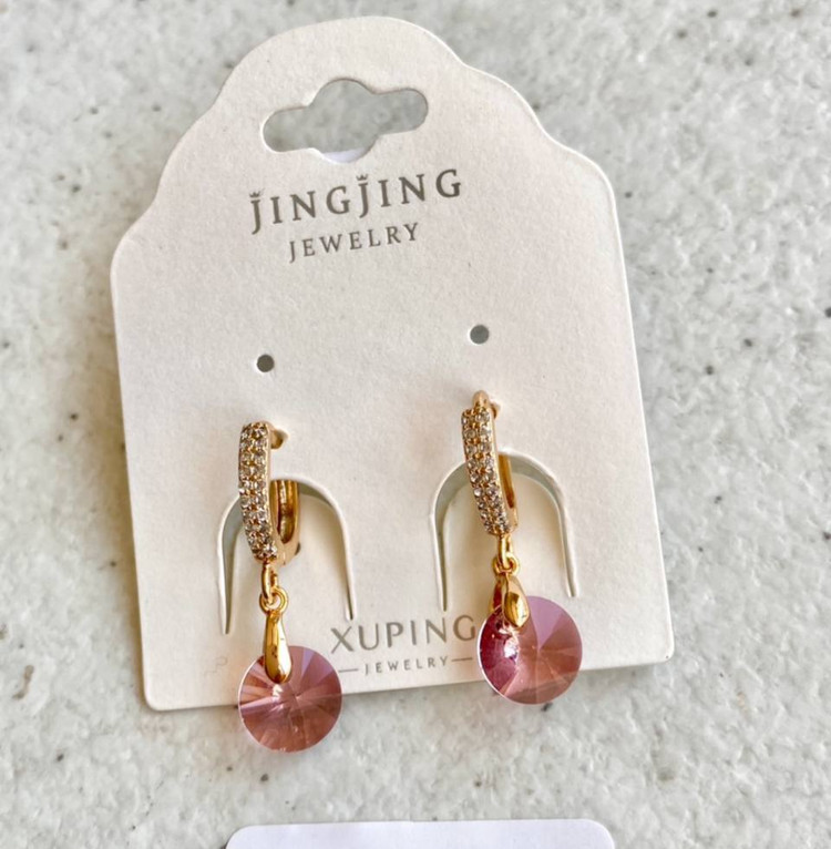 گوشواره با نگین سواروفسکی، رنگ صورتی، برند ژوپینگ