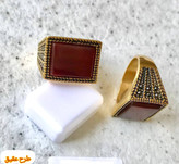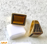 انگشتر استیل مردانه طرح عقیق و کهربا. با آبکاری بادوام صنعتی دو لایه و ضد حساسیت