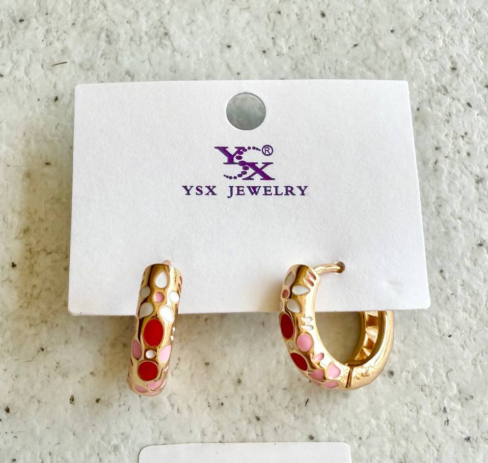 گوشواره حلقه ای مدل شکوفه های سفید و قرمز، برند ysx، آبکاری طلا، رنگ ثابت و ضد حساسیت.