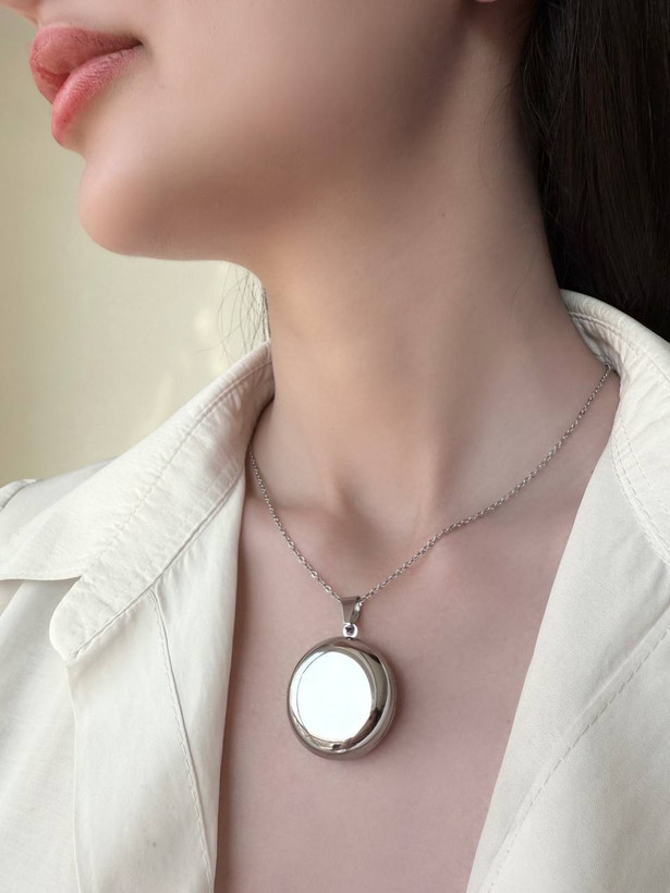 آویز گردنبند قاب عکسی (لاکت)، مدل دایره، جنس استیل کد ۰۲
