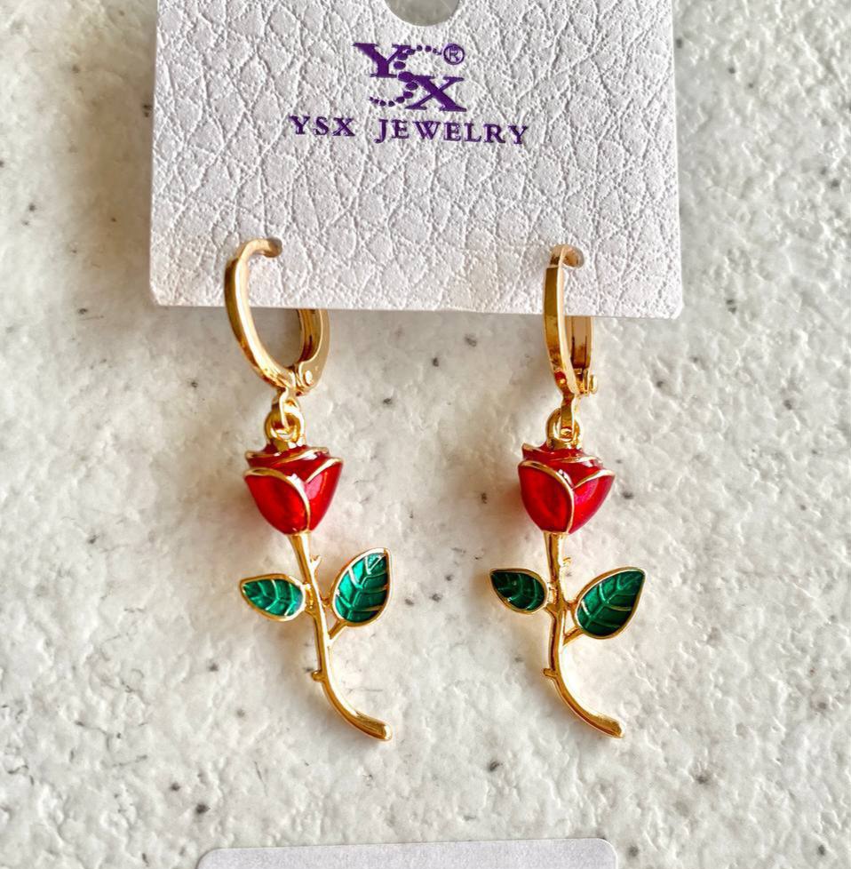 گوشواره حلقه ای مدل گل رز، برند ysx، آبکاری طلا، رنگ ثابت و ضد حساسیت.