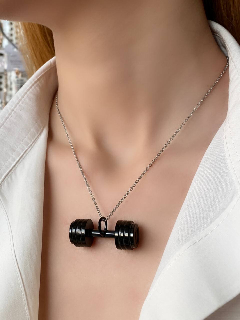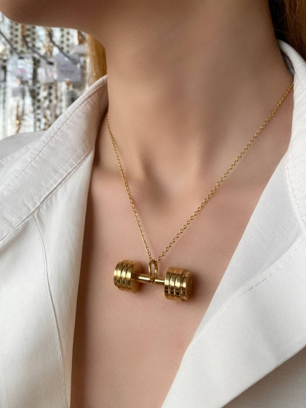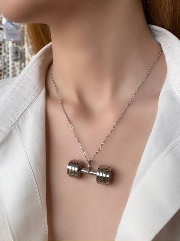 آویز گردنبند زنانه و مردانه، مدل دمبل ورزشکاری، جنس استیل با تنوع رنگ، با آبکاری دو لایه صنعتی و ضد حساسیت.