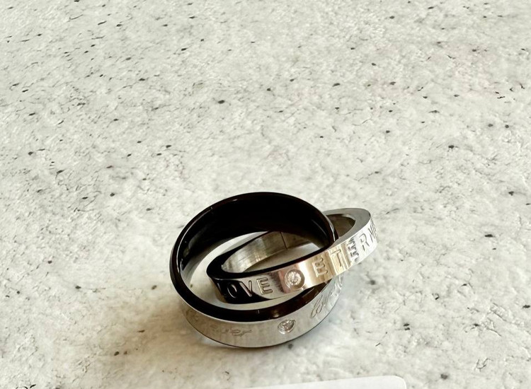 حک نوشته ی love و power در دو سمت نگین حلقه های دورنگ در هر آویز