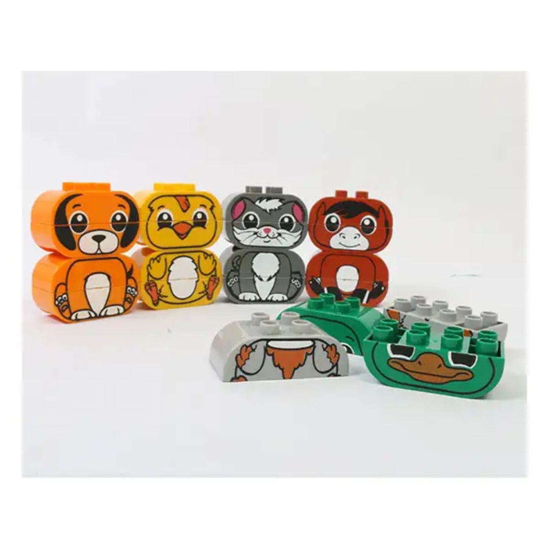 لگو پازلی حیوانات مزرعه شامل 5 حیوان مزرعه لگویی است که هر کدام از آن ها با استفاده از 4 قطعه آجره ساخته می شوند. کودکان با پیدا کردن و وصل کردن قطعات مختلف مربوط به یک حیوان می توانند حیوان مورد نظرشان را بسازند اما چیزی که این لگو را متمایز می کند این است که تمام قطعات قابلیت وصل شدن به یکدیگر را دارند و از اتصال قطعات بی ربط به هم می توان حیوانات عجیب غریب ساخت که زمینه ی گفتگو با کودک درباره ی ویژگی های مختلف حیوانات یا داستان گویی درمورد حیوانات عجیب و غریب و پرورش تخیل کودک را فراهم می کند.