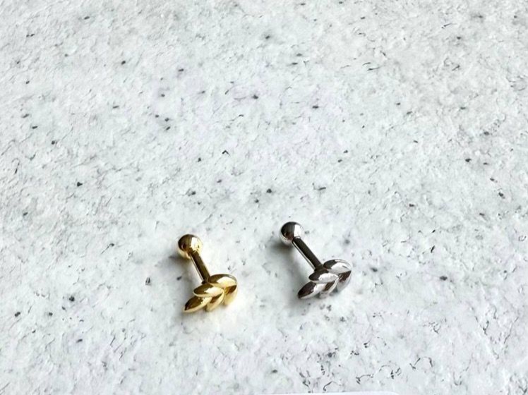 پیرسینگ گوش، مدل برگ و گندم، جنس استیل، با آبکاری با دوام صنعتی دو لایه و ضد حساسیت.
