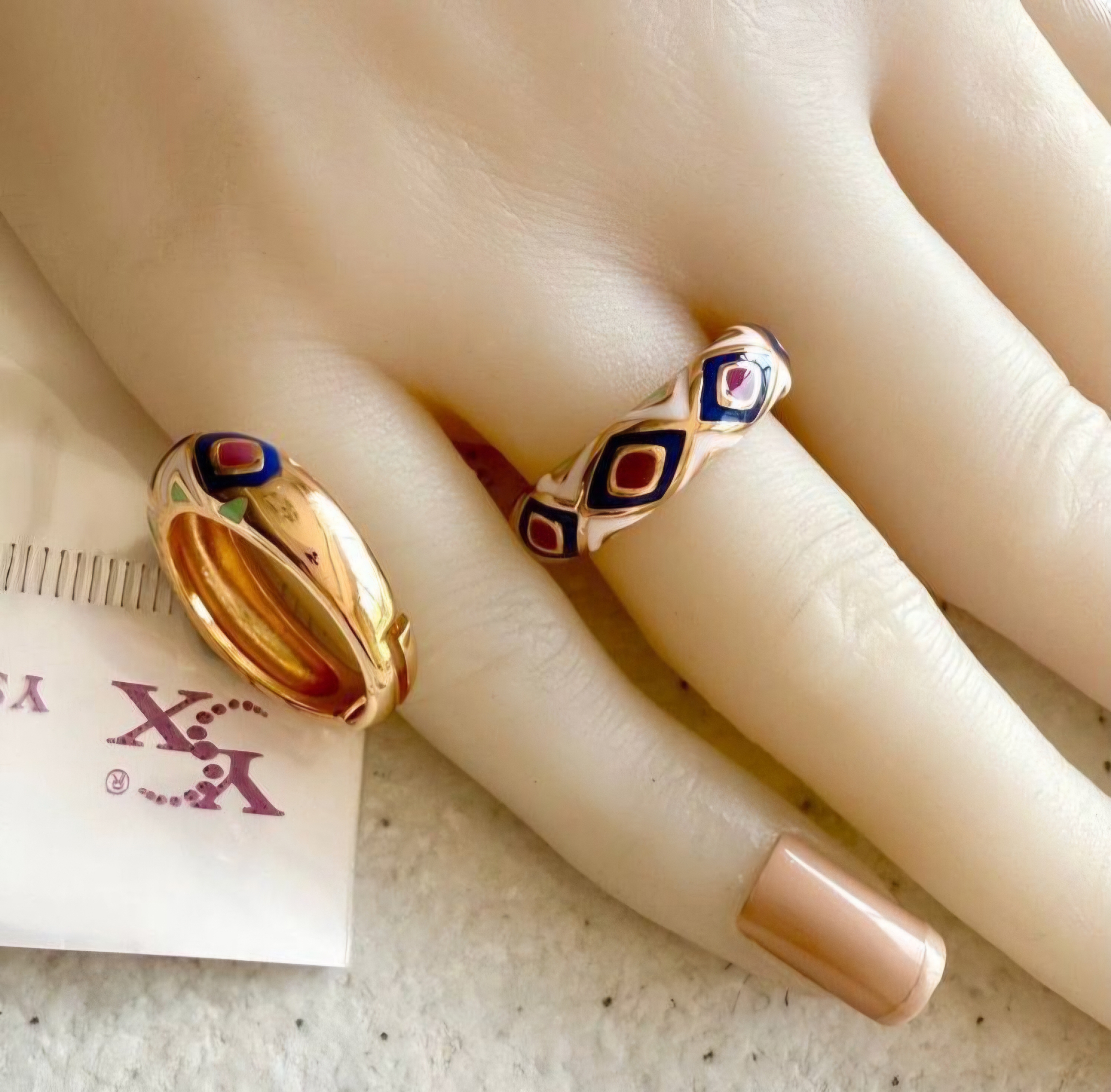 انگشتر مدل مینا کاری، برند ysx. آبکاری طلا. رنگ ثابت و ضد حساسیت