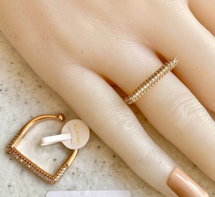 انگشتر گوشه دار فول نگین، برند ژوپینگ. آبکاری طلا. رنگ ثابت و ضد حساسیت