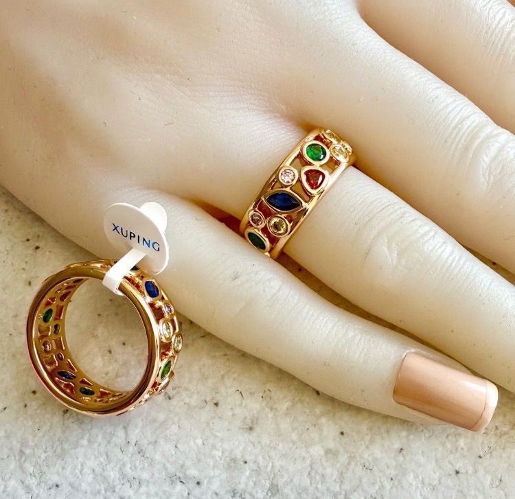 انگشتر نگین رنگی (مولتی کالر)، برند ژوپینگ. آبکاری طلا. رنگ ثابت و ضد حساسیت سایز ۷: قطر داخل انگشتر ۱۷ میلیمتر سایز ۸: قطر داخل انگشتر ۱۸ میلیمتر سایز ۹: قطر داخل انگشتر ۱۹ میلیمتر