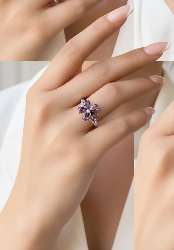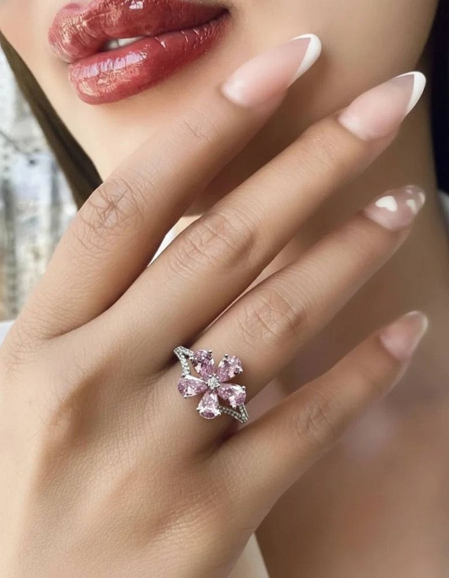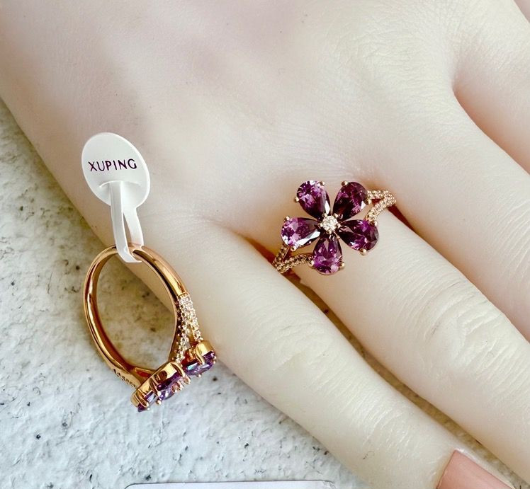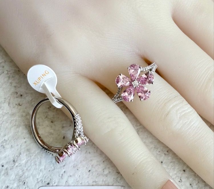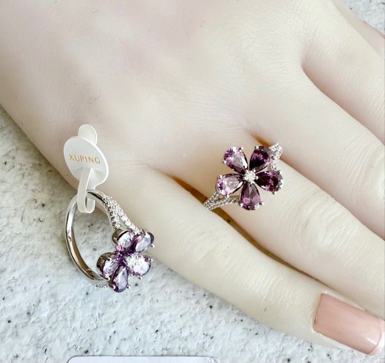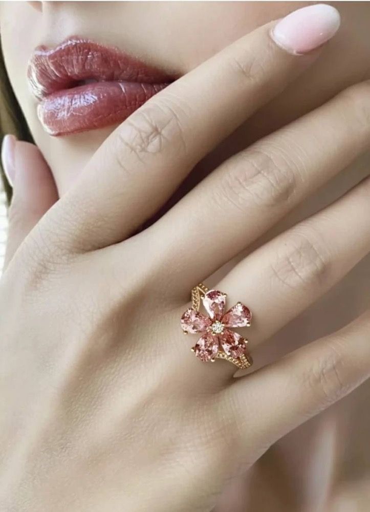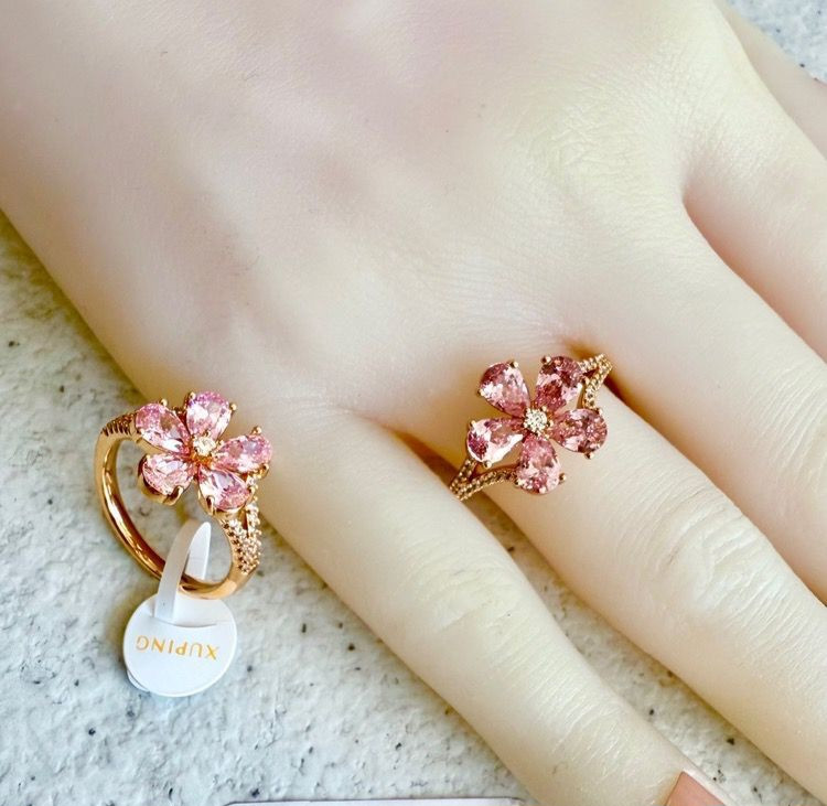 انگشتر با نگین گل پنج پر، با تنوع رنگ، برند ژوپینگ. آبکاری طلا. رنگ ثابت و ضد حساسیت