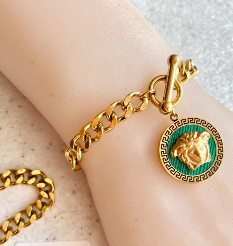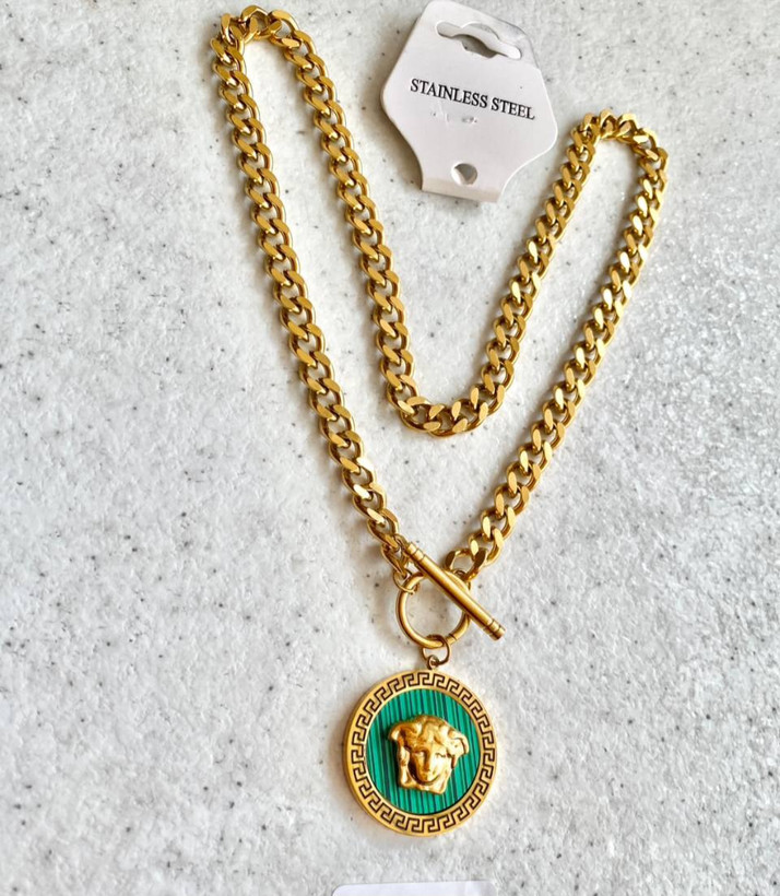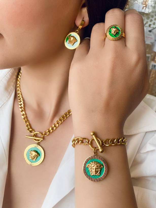 سرویس استیل زنانه مدل ورساچه، رنگ سبز، با آبکاری با دوام صنعتی دو لایه و ضد حساسیت.